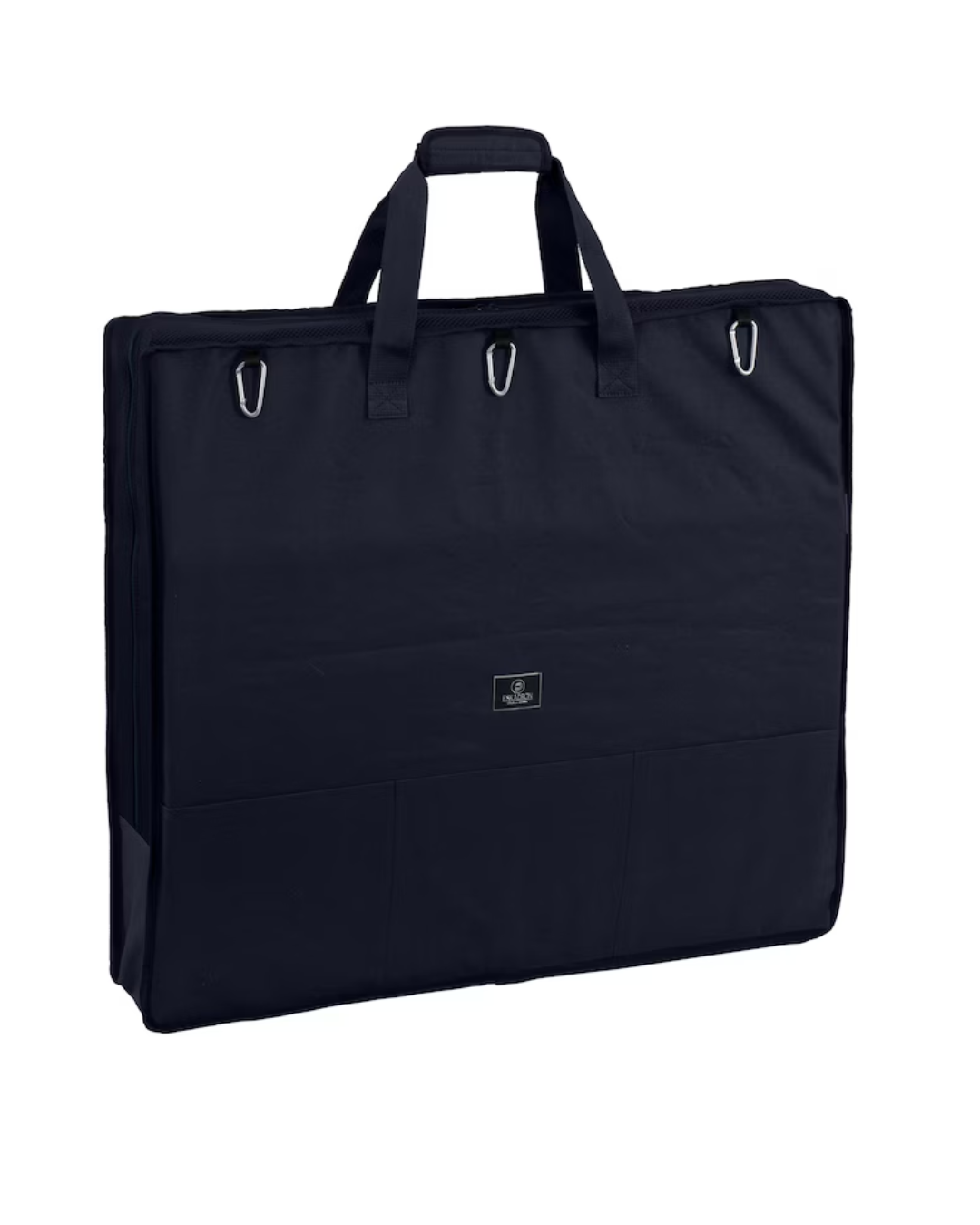 Tämä on täydellinen talli- ja kilpailukassi, jossa on kestävä kangas ja käytännöllisiä yksityiskohtia, kuten kolme pyörivää koukkua edessä ja takana tavaroiden ripustamista varten. Kilpailukassissa on kolme lokeroa kummallakin puolella (edessä ja takana).