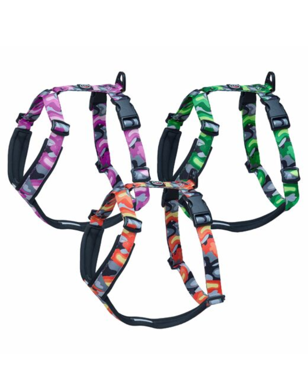 Sporttinen CAMOCOLOR Y-valjas runsaalla säätövaralla ja neopreeni pehmusteella