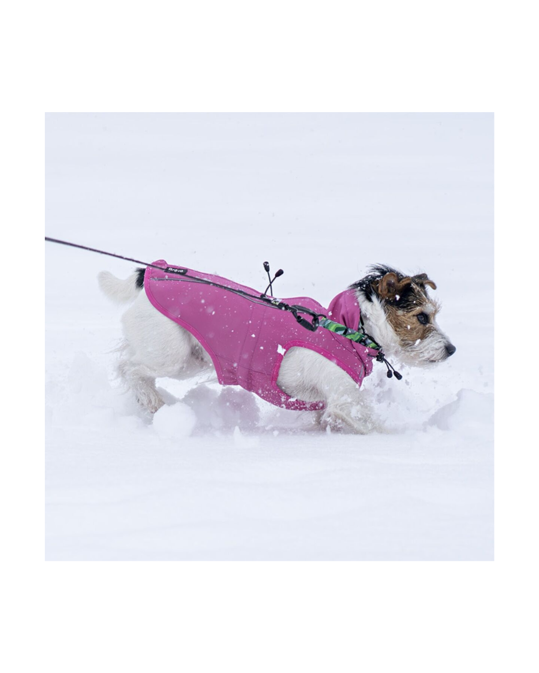 FINNERO SPORT softshell-takki on loistava valinta koiran ulkoiluun. Sateelta ja tuulelta suojaavassa takissa on pehmeä fleecevuori, joka lämmittää suuret lihasryhmät; selän, rinnan ja reisilihaksia. Kaulus suojaa niskaa ja sitä voidaan säätää sopivaksi joustavalla heijastimellisella nyörillä. Vatsakappale lämmittää niin rintakehää kuin vatsaakin, jossa on lisänä pieni joustava kiristys. Pukeminen on nopeaa ja vaivatonta, sillä selkäpuolen vetoketju aukeaa kokonaan.