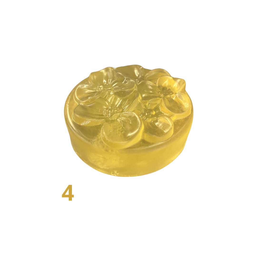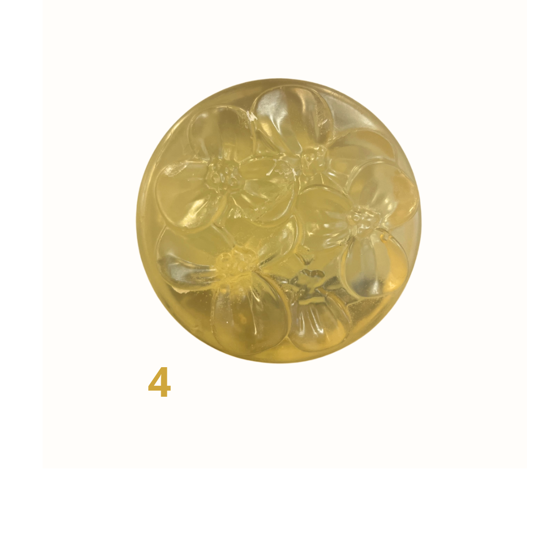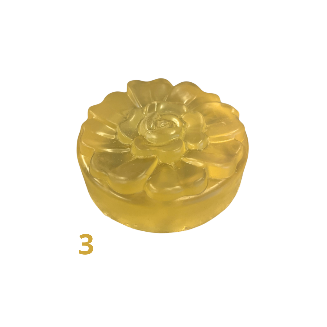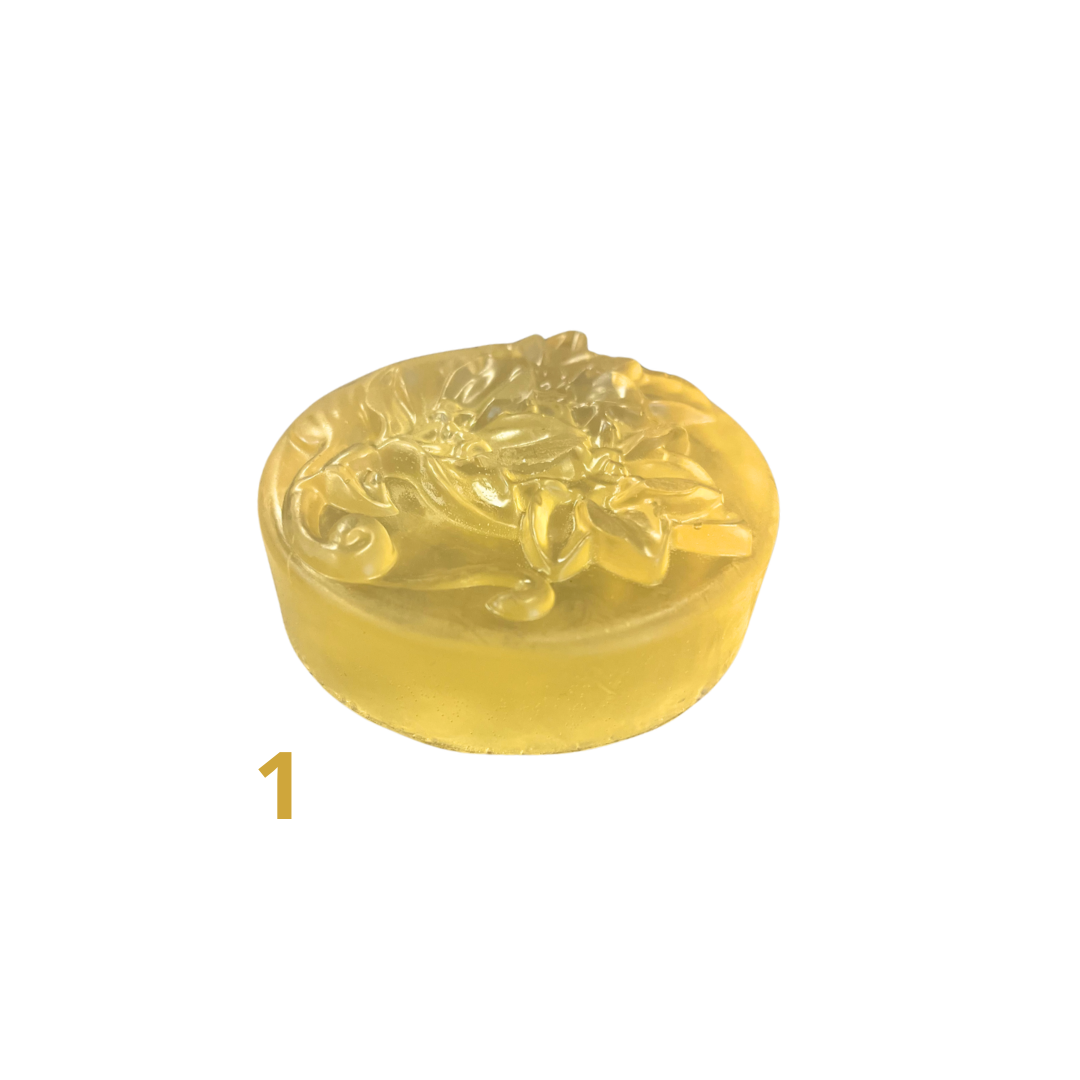 Kullankeltainen saippuamassa on läpikuultava ja neutraalin tuoksuinen.