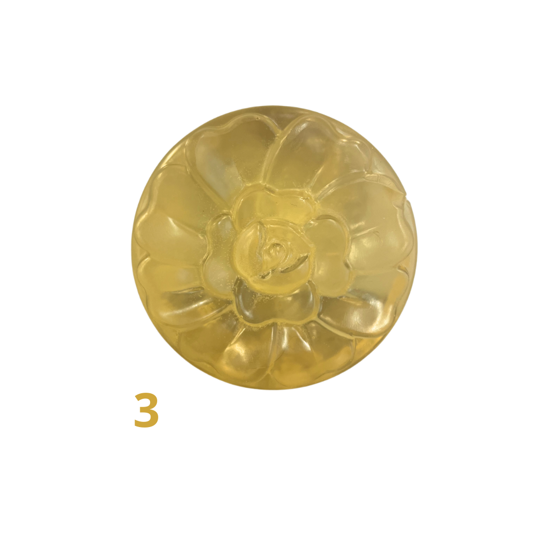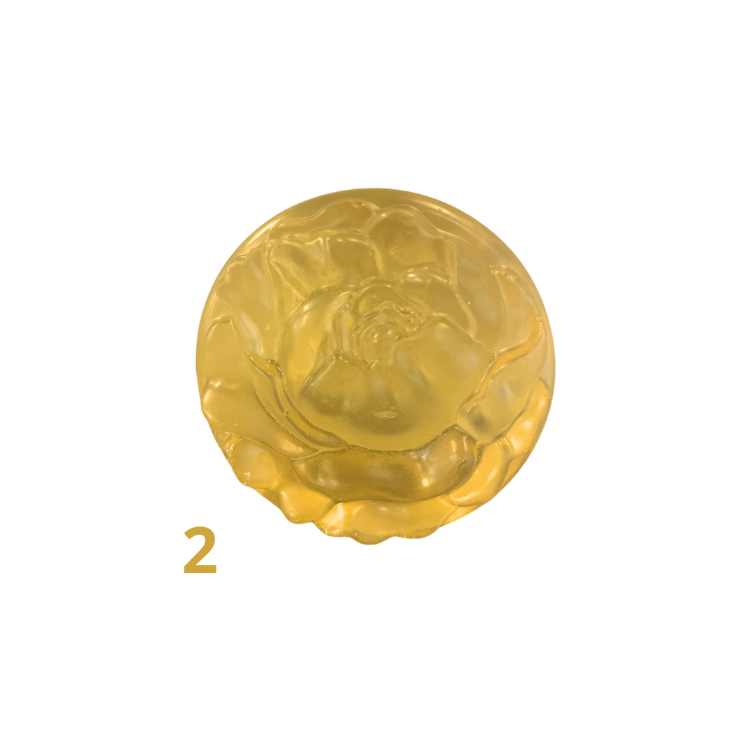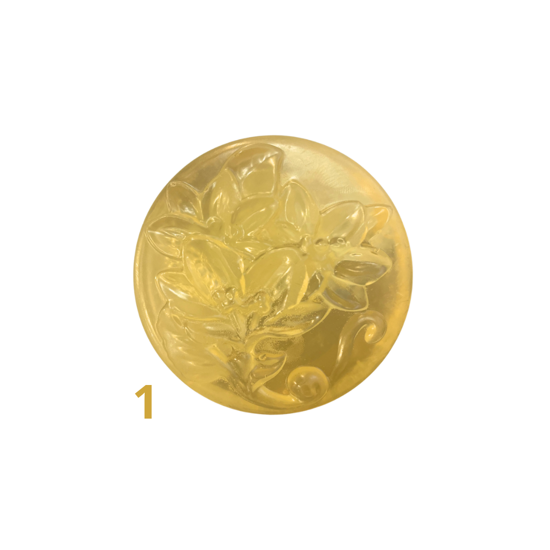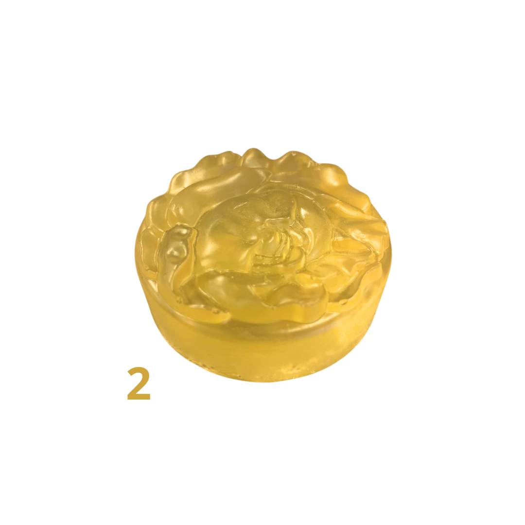Kullankeltainen saippuamassa on läpikuultava ja neutraalin tuoksuinen.