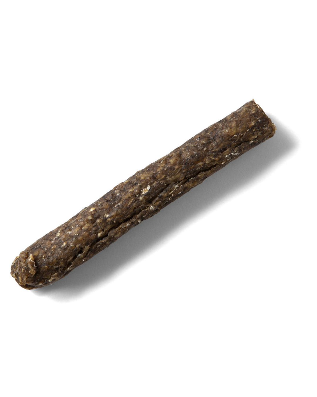 Mukaan on lisätty persiljaa ja merilevää sekä karpaloa, lisäämään maittavuutta ja tuomaan Pohjoista sävyä ja tunnelmaa. Isoille koirille tämä on maukas, nopeasti syötävä välipalaherkku.