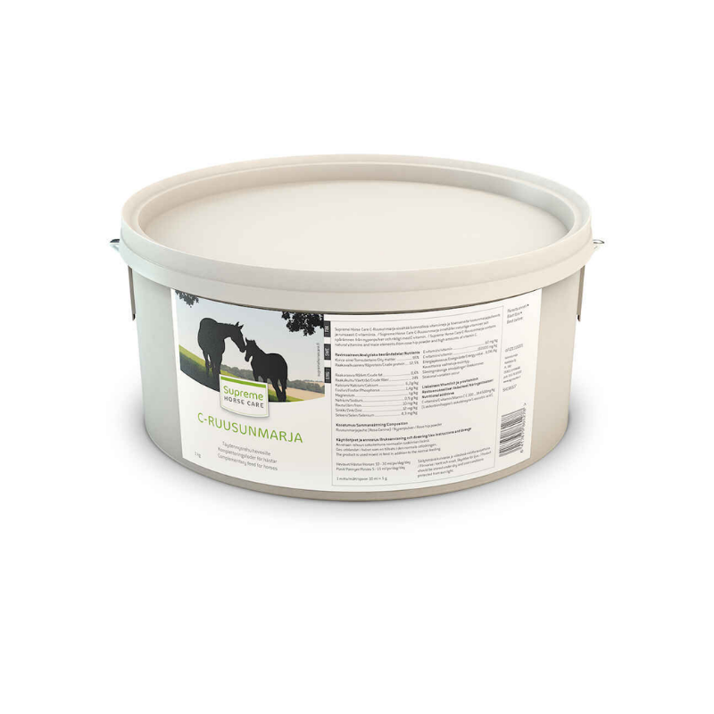 Supreme Horse Care Ruusunmarja on 100 % ruusunmarjaa, se sisältää runsaasti luonnollisia vitamiiniyhdisteitä, B-, C- ja P-vitamiinia sekä öljyä, jossa on tärkeitä rasvaliukoisia A-, D- E- ja K-vitamiineja. Ruusunmarja sisältää lisäksi runsaasti aminohappoja sekä magnesiumia.